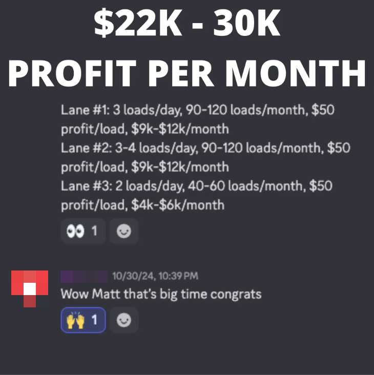 Stay-at-home parents, former drivers, and total beginners… people who had no idea what a “rate con” was before finding this course, are now signing carriers and booking high-paying loads.